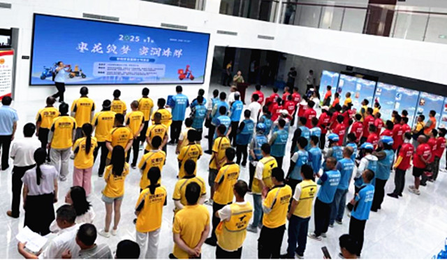 7月16日,在枣阳市七馆合一举行了一场别开生面的聘任仪式。本次活动由枣阳市委社会工作部主办,市市场监督管理局、市“小个专”综合党委、市个私协会承办,来自美团、饿了么平台的50名骑士代表参加。